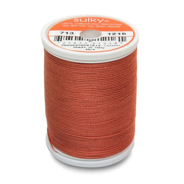 Make a more beautiful, bolder statement on your quilting, serging, embroidery, handwork and other decorative projects with Sulky 12 Wt. Cotton thread, which is 40% thicker than 30 Wt. All Sulky Cotton Threads are premier quality, long staple, highly mercerized Egyptian cotton with a matte finish to create a soft, warm, natural look and feel. You will fall in love with our color selection! Recommended Needle Size: 16/100 or 16/100 Topstitch
