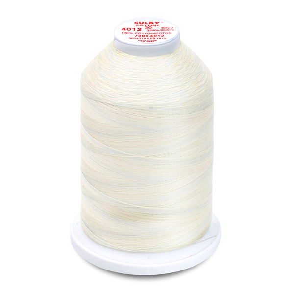 You will be dazzled and amazed at the intriguing results you will get with Sulky 30 Wt. Cotton Blendables thread. These exciting, multicolor threads are a masterful blend of different colors within the same range of tone and intensity, with random, subtle color changes every 2-1/2 to 5 inches! No other thread does this!  Our 30 Wt. Cotton thread is slightly thicker than your standard 40 Wt. quilting cotton. This allows your quilting or appliqué to stand out from the crowd! All Sulky Cotton Threads are premier quality, long staple, highly mercerized Egyptian cotton with a matte finish to create a soft, warm, natural look and feel. ALL our cotton thread comes from 100% Egyptian Cotton that is grown in Egypt. Most critical to its quality is that it is dyed and finished in Italy, which is why you see Made in Italy on the cone.