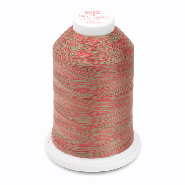You will be dazzled and amazed at the intriguing results you will get with Sulky 30 Wt. Cotton Blendables thread. These exciting, multicolor threads are a masterful blend of different colors within the same range of tone and intensity, with random, subtle color changes every 2-1/2 to 5 inches! No other thread does this! Our 30 Wt. Cotton thread is 1/3 thicker than your standard 40 Wt. quilting cotton. This allows your quilting or appliqué to stand out from the crowd! All Sulky Cotton Threads are premier quality, long staple, highly mercerized Egyptian cotton with a matte finish to create a soft, warm, natural look and feel. ALL our cotton thread comes from 100% Egyptian Cotton that is grown in Egypt. Most critical to its quality is that it is dyed and finished in Italy, which is why you see “Made in Italy” on the spool.