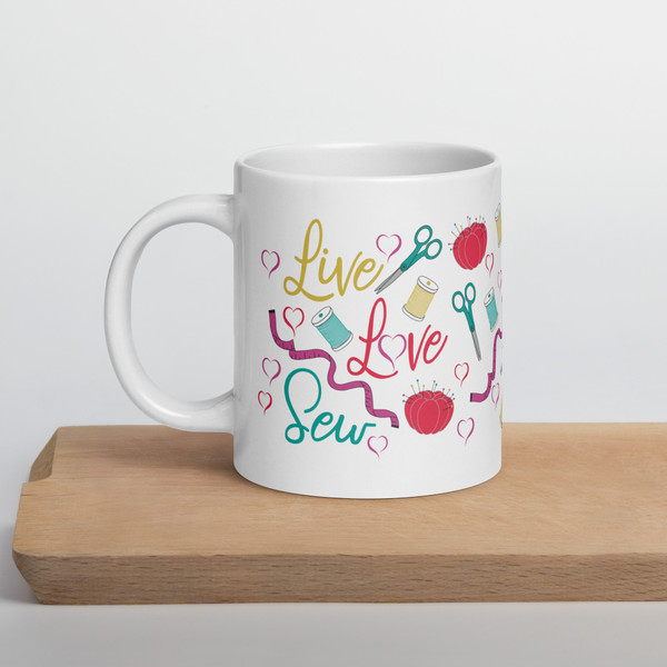 Share your love of crafting with this cute mug featuring the phrase "Live Love Craft". Whether you're drinking your morning coffee, evening tea, or something in between—this mug's for you! It's sturdy and glossy with a vivid print that'll withstand the microwave and dishwasher.
